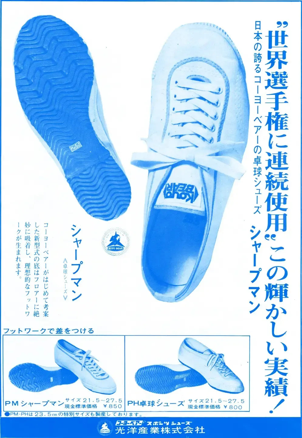 1950年代と1960年代に活躍した日本の卓球チャンピオンたちが世界に送り出したコーヨーベアーのシャープマンは、数十年にわたって世界の卓球界を席巻しました。