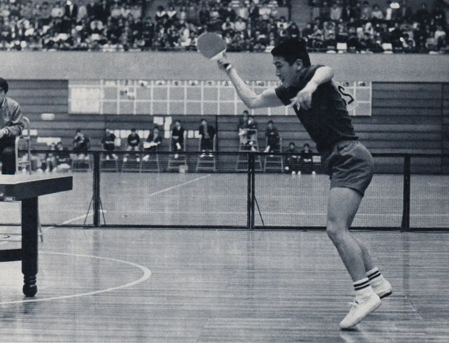 卓球界のレジェンド、荻村伊智朗によってデザインされた「シャープマン」は、荻村の多彩なプレースタイルを象徴する軽快なフットワークと瞬発力を引き出す、かつてないほどの動きとグリップ、柔軟性を実現。
